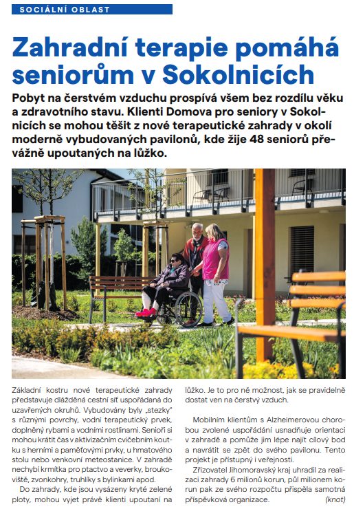 Zahradní terapie pomáhá seniorům v Sokolnicích